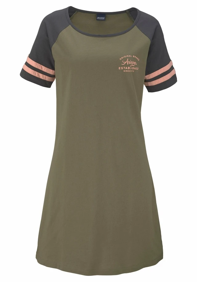Arizona Nachthemd mit sportlichen Streifen an den Armen und Raglan Ärmeln. Gefertigt aus einer weichen und bequemen Single-Jersey Qualität. Aus 100% Baumwolle.