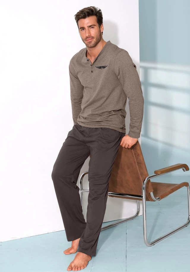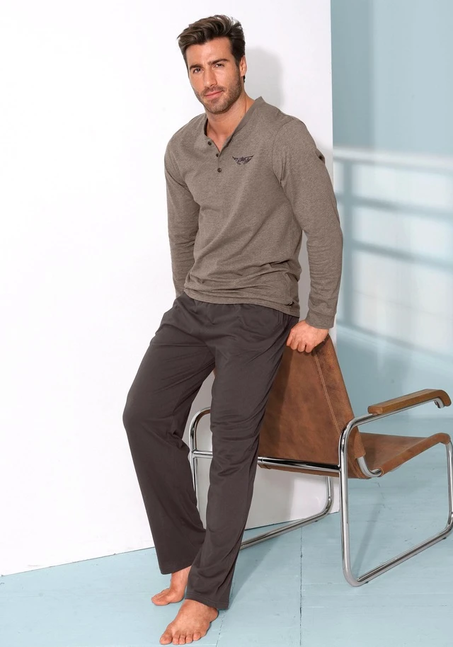 AUTHENTIC LE JOGGER Pyjama, (2 tlg., 1 Stück), mit Knopfleiste