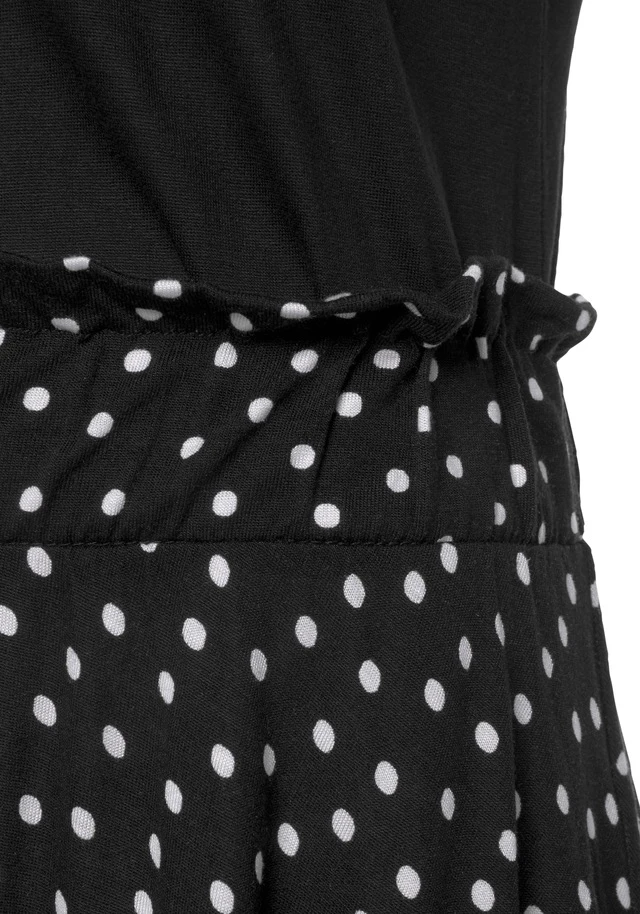 Kleid von Beachtime in 2-in-1-Optik. Legere Form mit weitem Rock für ein luftiges Tragegefühl. Oberteil mit kurzen Ärmeln. Rockteil im bedruckten, gepunkteten Design. Für vielseitige Anlässe. Aus weicher Viskose.