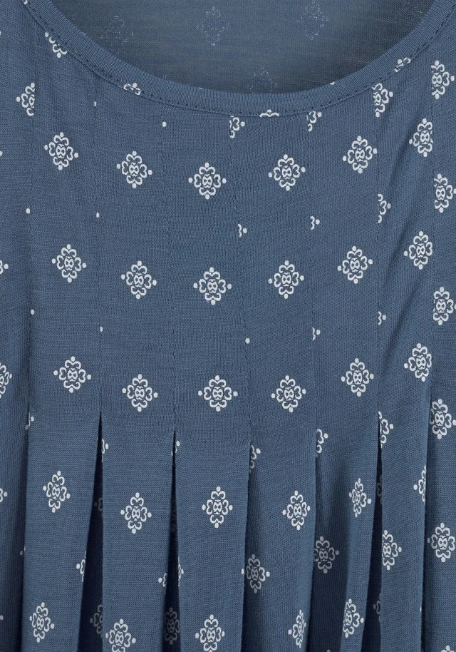 Trägerform mit eingelegten Falten unter der Brust und süßen Druckdessins auf dem Rockteil. Weich fließende Qualität. Länge ca. 90 cm. Aus 100% Viskose.