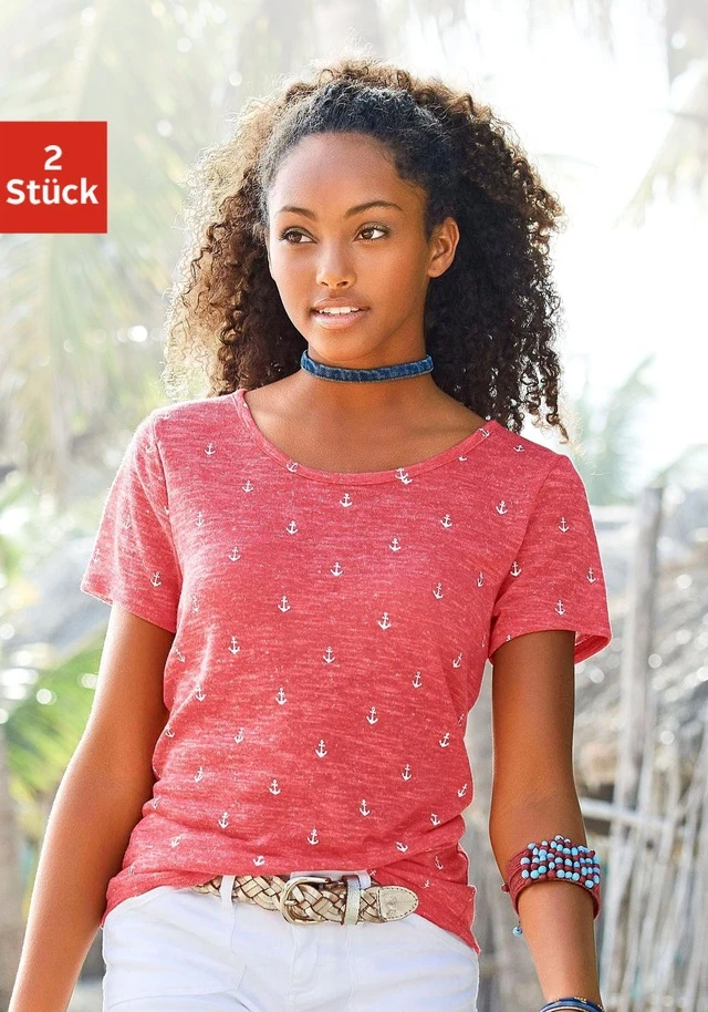 Beachtime T-Shirt, (2er-Pack), mit maritimem Anker-Druck