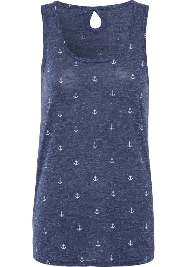 Beachtime Tops im 2er Pack. Mit hübschem Anker-Alloverdruck. Kleiner Cut-Out im Nacken. Aus weichem, leicht transparenten Material mit Leinenanteil
