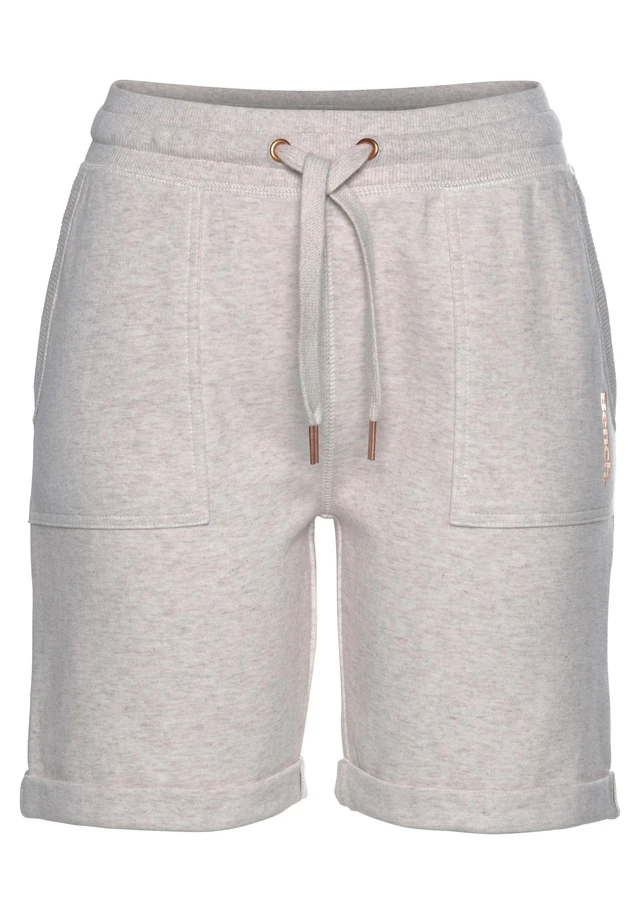 Bequeme Lounge-Bermudas von Bench, aufgesetzten Eingrifftaschen, elastischer Rippbund mit Tunnelzug zum verstellen der Weite, Aufschlag an den Beinsäumen. Aus 60% Baumwolle (Cotton made in Africa), 40% Polyester. Beige meliert aus 90% Baumwolle (Cotton made in Africa).