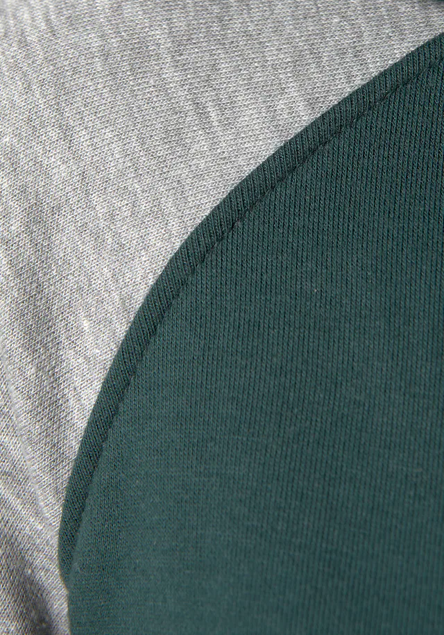 - Kontrastfarbene Raglanärmel mit Rippbündchen
