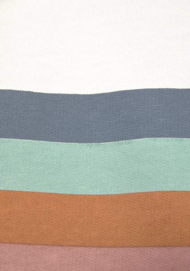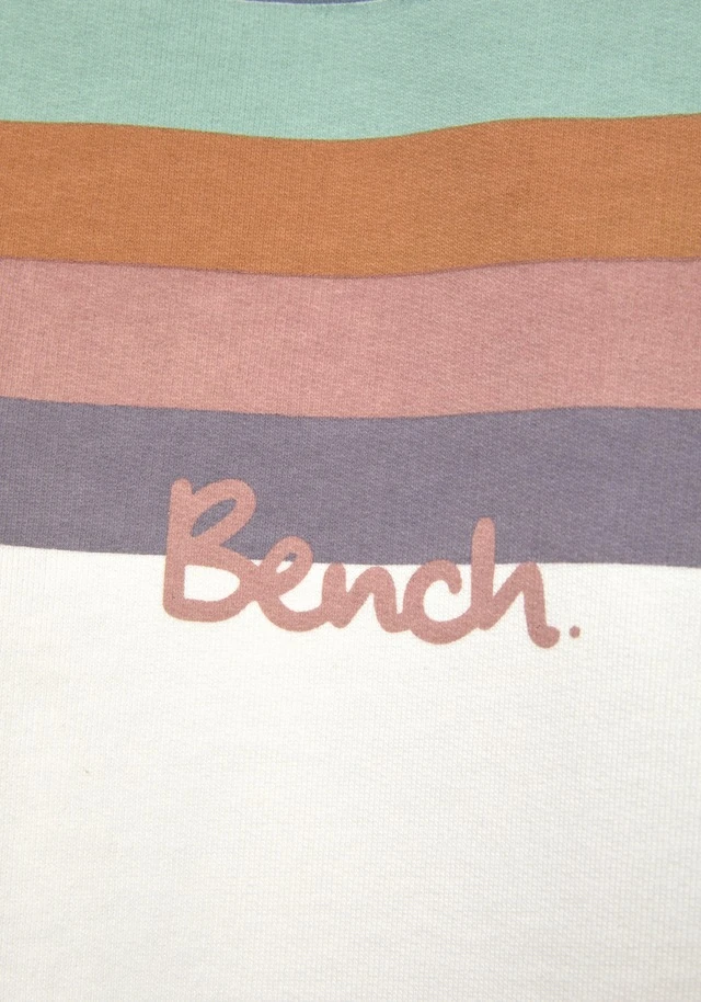 Kapuzensweatshirt von Bench. Multicolorstreifendruck mit kleinem Logo-Schriftzug vorn. Kontrastfarben gefütterte Kapuze mit Tunnelzug. Rippbündchen an den Ärmel und am Saum. Länge ca. 66 cm. Aus 60% Baumwolle (unterstützt Cotton made in Africa), 40% Polyester.
