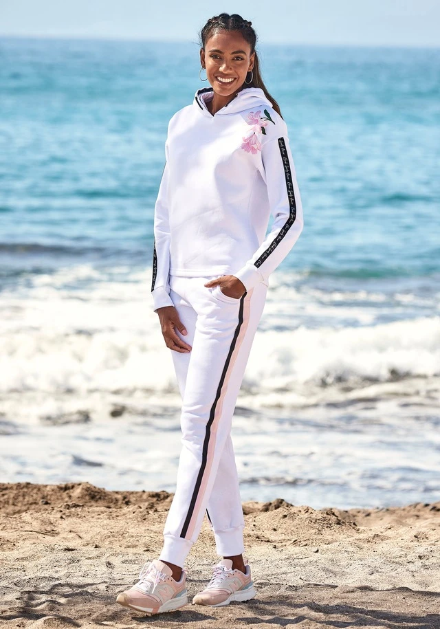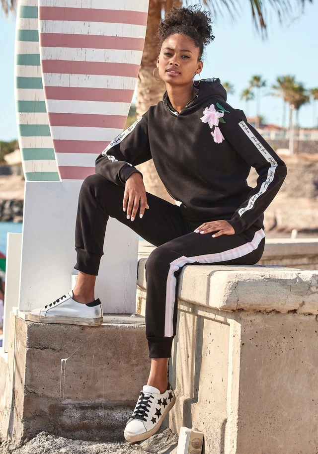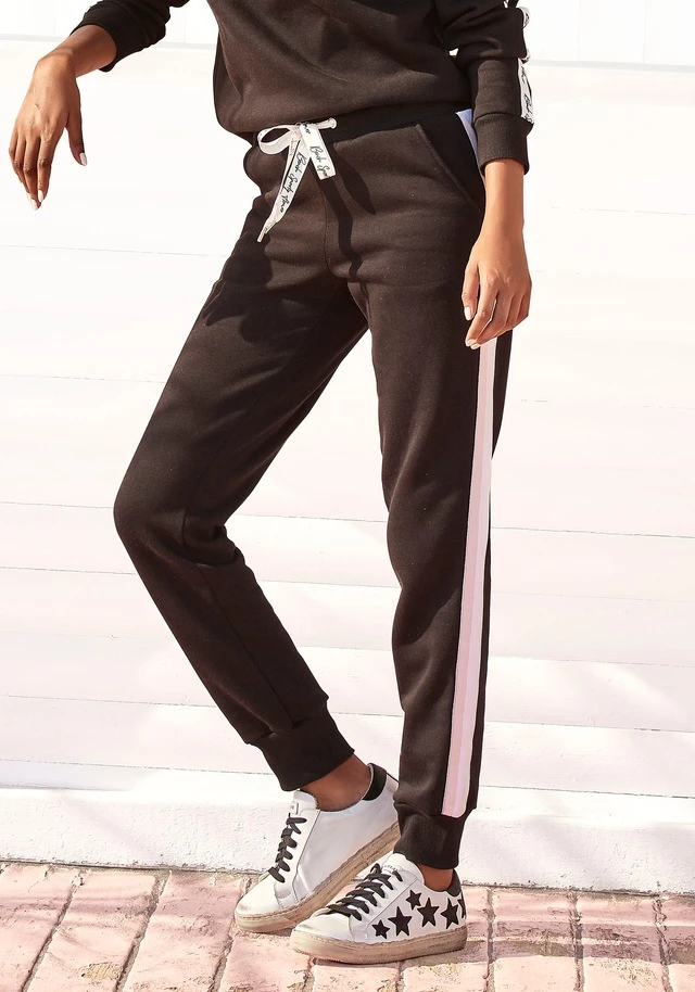 Bench. Relaxhose, mit bedruckten Bändern und seitlichen Streifen