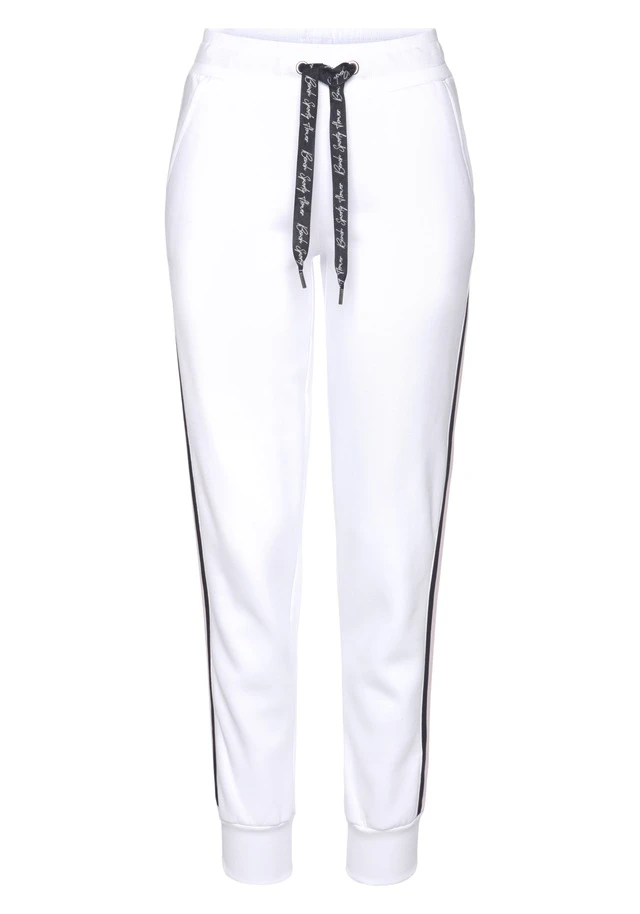 Sweathose von Bench. Bequeme Sweathose mit Tunnelzugbund und bedruckten Bindebändern. Breiter Streifen entlang der Beine. Seitliche Eingrifftaschen. Aus 50% Baumwolle (unterstützt Cotton made in Africa) 50% Polyester.