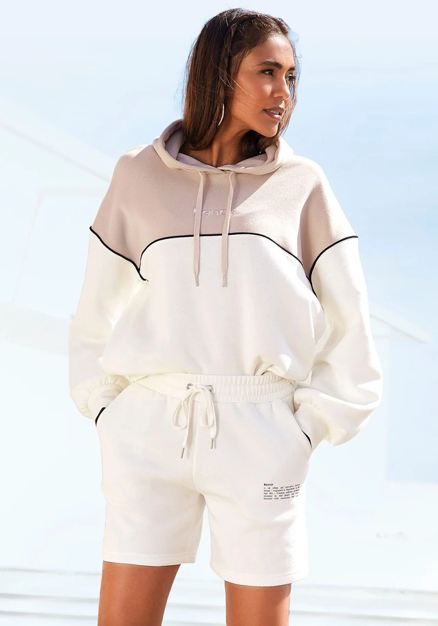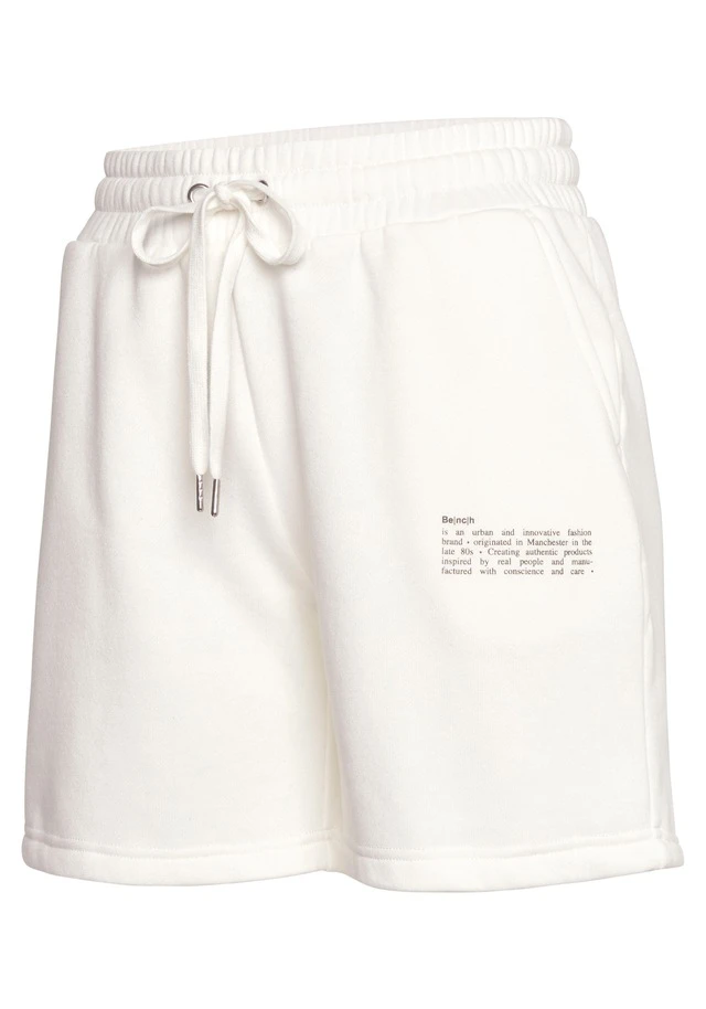 Kurze Loungehose von Bench. Mit Schriftzugprint vorn. Geraffter Stretchbund mit verstellbarem Tunnelzug. Seitliche Eingrifftaschen. Weiche Sweatqualität.