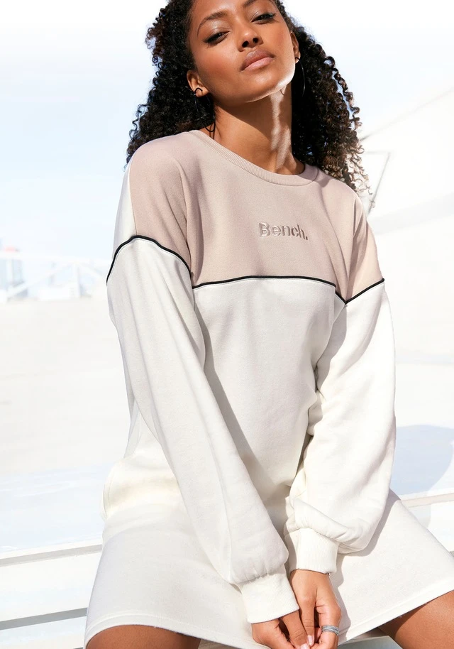 Sweatkleid von Bench. Mit farblich abgesetzter Paspel. Mit Logostickerei vorn. Gerippte Bündchen an den Ärmelenden. Praktische Seitentaschen. Weiches Sweatmaterial.