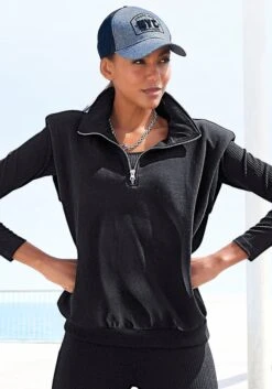 Sweatpullunder von Bench. Stehkragen mit kurzem Reißverschluss. Rippbund am Saum. Kleiner Schriftzugprint vorn. Weiche Sweatware.
