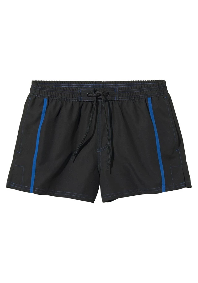 Badeshorts mit elastischem Bund und Außenkordel. Seitliche Eingrifftaschen, Innenslip, kleine Innentasche und Gesäßtasche mit Klettverschluss. Seitenlänge in Größe M(50) ca. 31 cm. Tolle Microfaser-Qualität.