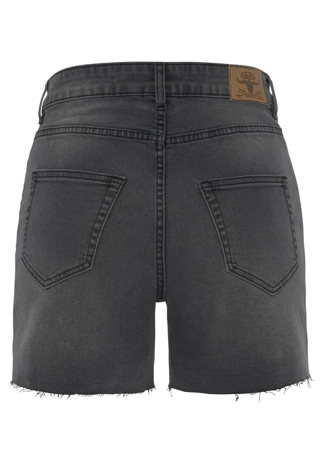 Coole 5-Pocket-Jeansshorts von Buffalo mit leichter Used- Waschung. Fransiger, offener Saum. Hohe Leibhöhe. Ein Basic für warme Tage. Hochwertige Denimqualität mit Stretchanteil.
