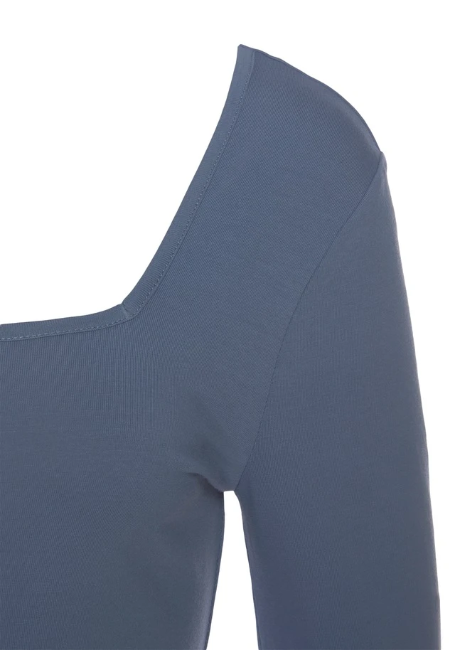 Shirt von BUFFALO. Taillierte Form mit Karreeausschnitt vorn und rundem Ausschnitt hinten. Lange Ärmel. Länge ca. 56 cm. Aus weicher Jerseyware.
