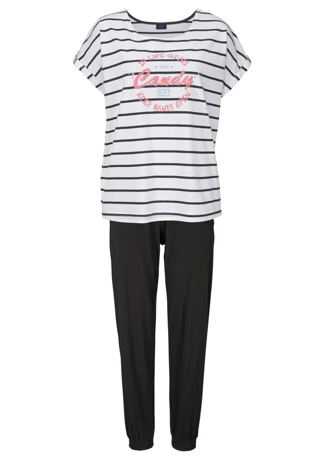 Buffalo Pyjama, (2 tlg., 1 Stück), im Streifenlook mit farbigem Frontprint