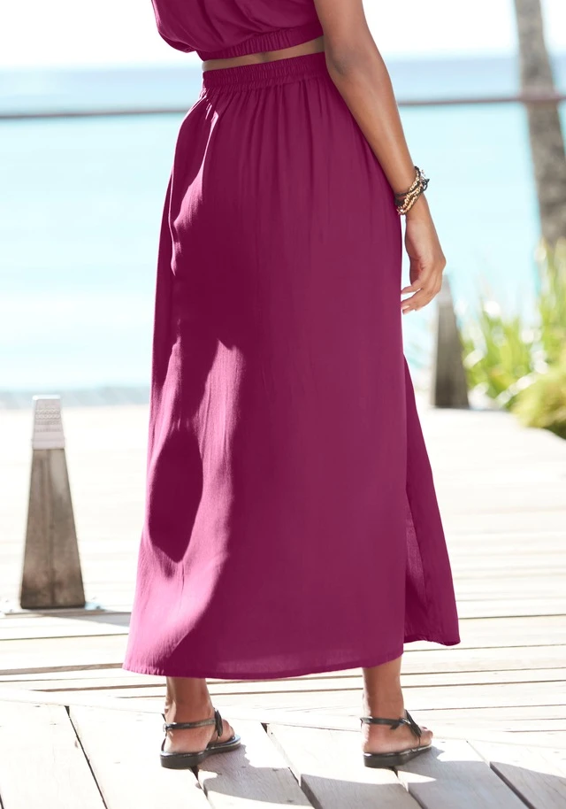 Unifarbener Maxirock von Lascana. Bund vorn glatt, hinten mit Gummizug. Langer Schlitz seitlich. Gerader Saumabschluss. Für viele Gelegenheiten. Weich schwingende Viskose.