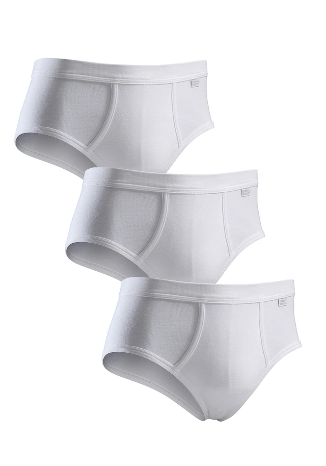 Herren Feinripp-Slip im 3er Pack. Mit Eingriff und Weichgummibund. Obermaterial: 100% Baumwolle.