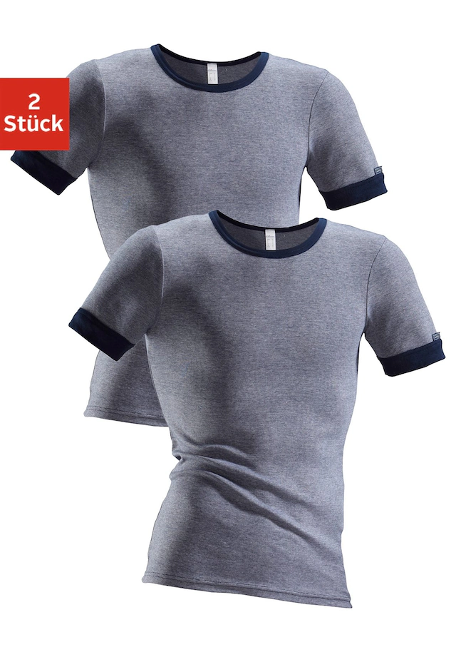 Exklusive Qualität in modischer Optik: jeans meliert. Mit Rundhalsausschnitt und Paspeln in Marine. Mit ¼-Arm. Im 2er-Pack. Aus 100% Baumwolle.