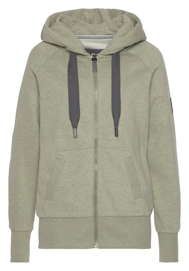 Komfortable Kapuzensweatjacke von Elbsand. Mit Kapuzentunnelzug. Lange Raglanärmel. Gerippte Ärmeleinsätze. Eingrifftaschen. Abschluss mit breitem Bündchen. Auffallendes Detail: große Logostickerei an der Kapuze. Perfekt für Homewear. Aus weichem Material in Sweatqualität.
