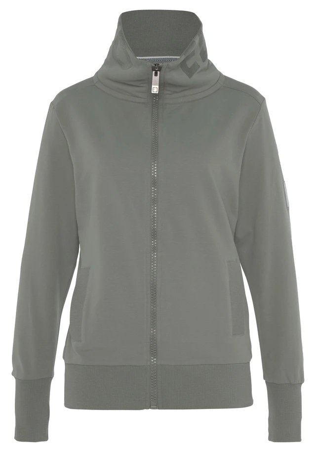 Sweatjacke »Alvis« von ELBSAND. Reißverschluss und hoher Stehkragen mit Logoprint. Seitliche Eingrifftaschen. Logo-Badge auf einem Ärmel. Breite Rippbündchen an Ärmeln und Saum. Länge ca. 66 cm. Aus weicher Sweatware.