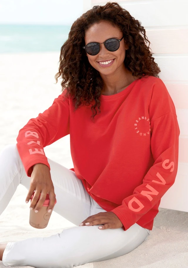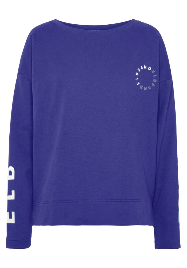 Cooles Sweatshirt von Elbsand. Markendruck entlang der Ärmel und runder Markendruck vorn. Weiter Rundhalsausschnitt mit Bündchen. Gerade Passform mit überschnittenen Ärmelnähten. Gut zu legeren Styles. Leichte Sweatware mit weichem Griff.