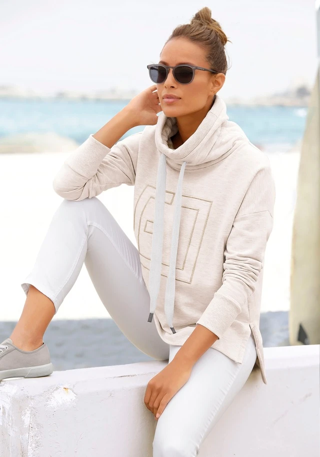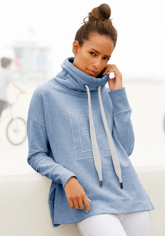 Hoher Stehkragen mit Tunnelzug. Logo-Applikation vorn. Extrabreite Bündchen and den Ärmeln und Saum. Lässige Form mit Seitenschlitzen. Länge ca. 70 cm. Kuschelweiche Sweatware in melierter Optik. Aus 67% Baumwolle, 33% Polyester.