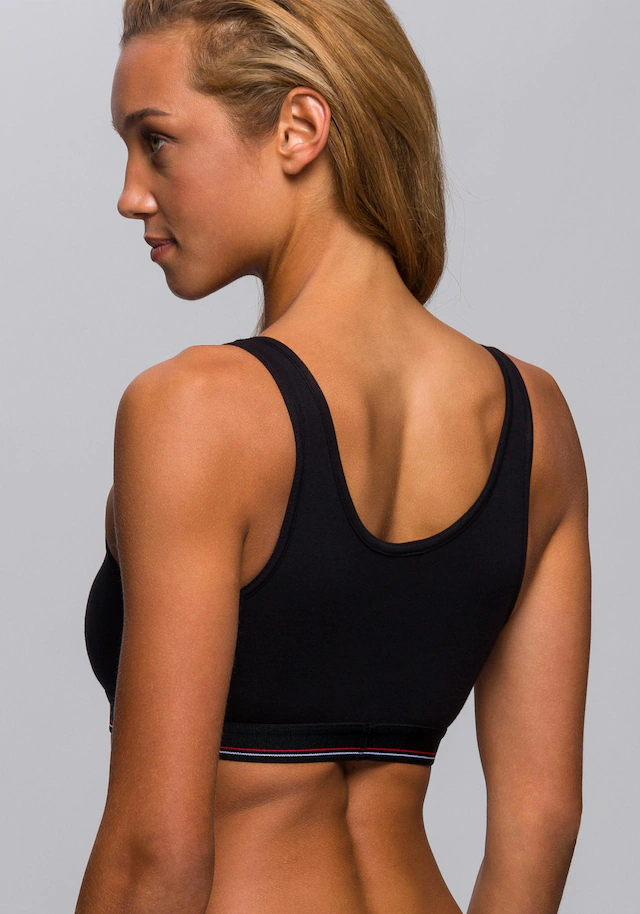 Hübsches Bustier von H.I.S im 2er-Pack. Bequemes Unterbrustgummi mit feinem Kontraststreifen. Flache Einfassungen an Hals- und Armausschnitten. Geeignet für Cup A und B. Aus trageangenehmer, elastischer Baumwolle.