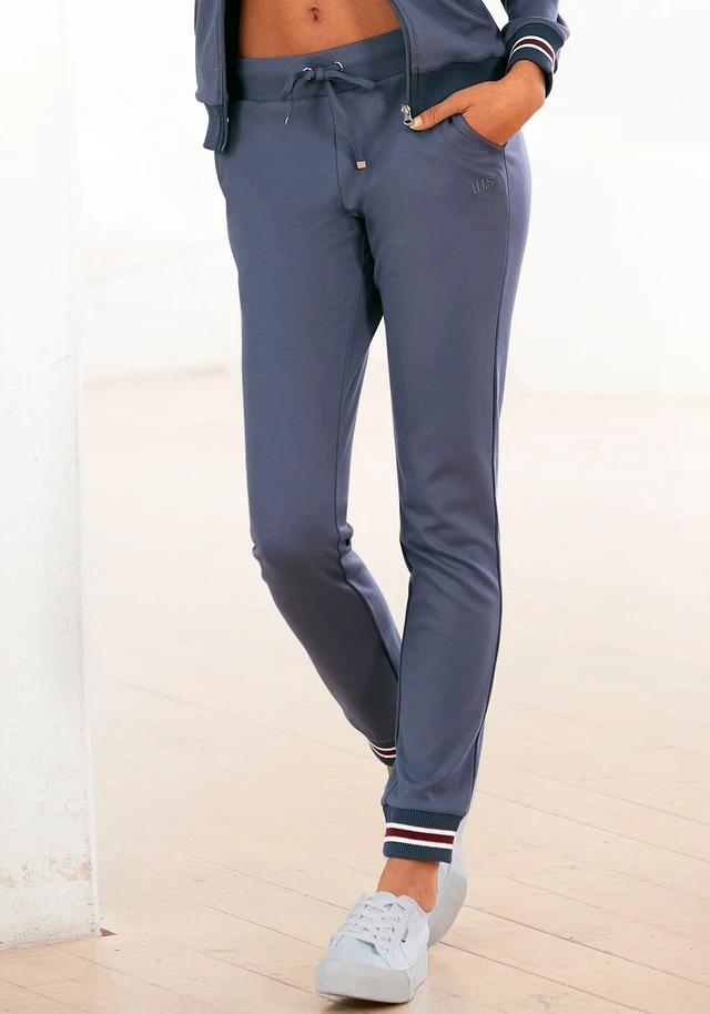 Joggpants von H.I.S, elastisches Bündchen ist mit einem Kordelzug, Eingrifftaschen, Paspeltaschen zieren die Rückseite, elastische Rippbündchen am Beinabschluss in Ringeloptik.