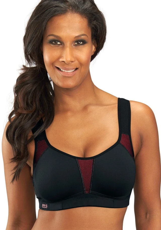 Dieser Bestseller Sport-BH von H.I.S. überzeugt mit sportivem Look mit kontrastfarbenen Einsätzen und hoher Funktionalität. Nahtlos vorgeformte Cups umschließen fest die Büste und sorgen für ein stabiles Gefühl. Breite, gefütterte Träger bieten den nötigen Halt bis in große Cupgrößen und schnüren nicht ein. Hiermit kann jede Frau gelassen in ein Training mit hoher Belastung starten: dieser BH ohne Bügel ist ein perfekter Begleiter für alle Sportarten mit viel Bewegung, wie z.B. Joggen oder Ballsport. Das hochwertige »Coolmax«-Material hält die Haut optimal trocken, da Feuchtigkeit schnell abtransportiert wird und eine gute Atmungsaktivität gewährleistet ist. Die Träger und der Rücken lassen sich einfach verstellen. Schnell bestellen und ab zum Sport! Klassische Dessous. Bequeme Alltags-Dessous. Modische Dessous. Der Sport-BH ist aus 90% Polyester (COOLMAX®), 10% Elasthan. BHs sind nicht trocknergeeignet, da die Versteller und Ringe durch die Hitze beschädigt werden und brechen.