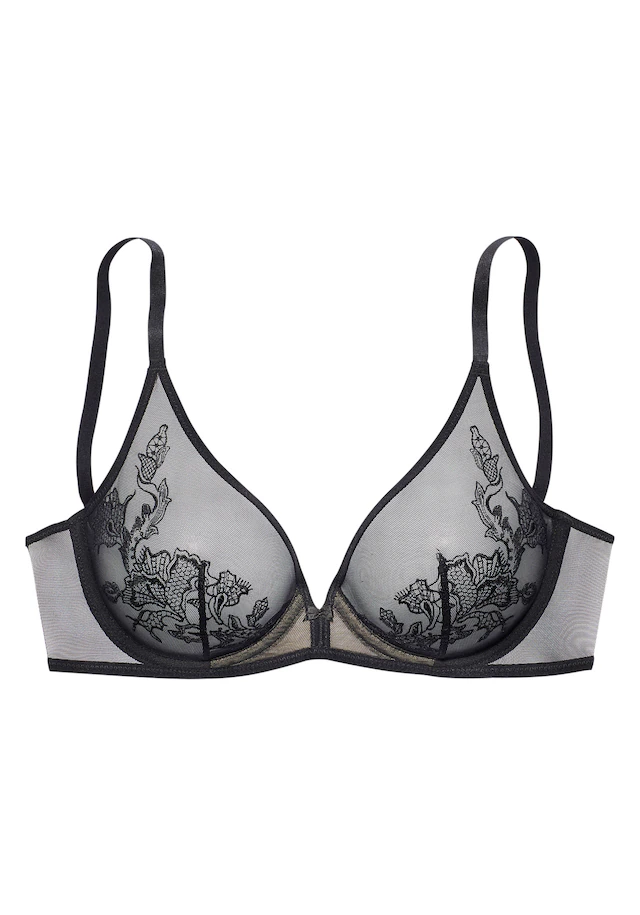 Extravaganter Bügel-BH kreiert von der Designerin Jette Joop. Mit feinem Muster im Tattoo-Look. In verführerisch transparenter Optik. Träger und Rückenverschluss sind individuell verstellbar. Mit passenden BH’s aus der gleichen Serie erhältlich. Obermaterial: 77% Polyamid, 16% Polyester, 7% Elasthan.