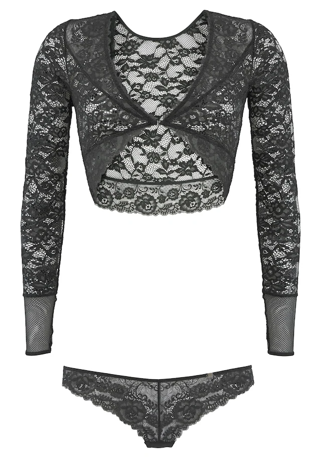 Kreiert von der Designerin Jette Joop. Ganz aus Spitze. Mit Netzeinsatz am Handgelenk. Vorn mit Häkchen zu öffnen. Erotische Dessous. Reizvolle Dessous. Reizwäsche. Verführerische Dessous. Spitzen-Dessous. Romantische Dessous. Verspielte Dessous. Aus 90% Polyamid, 10% Elasthan.
