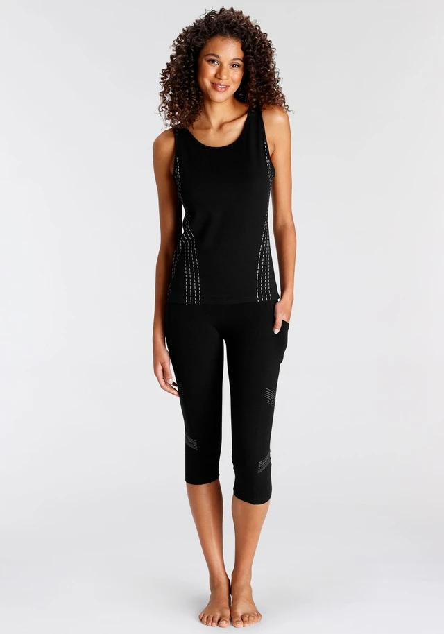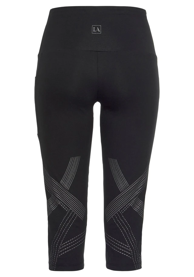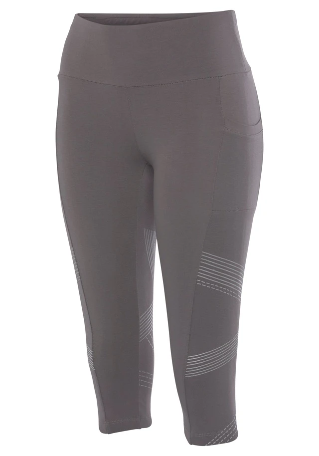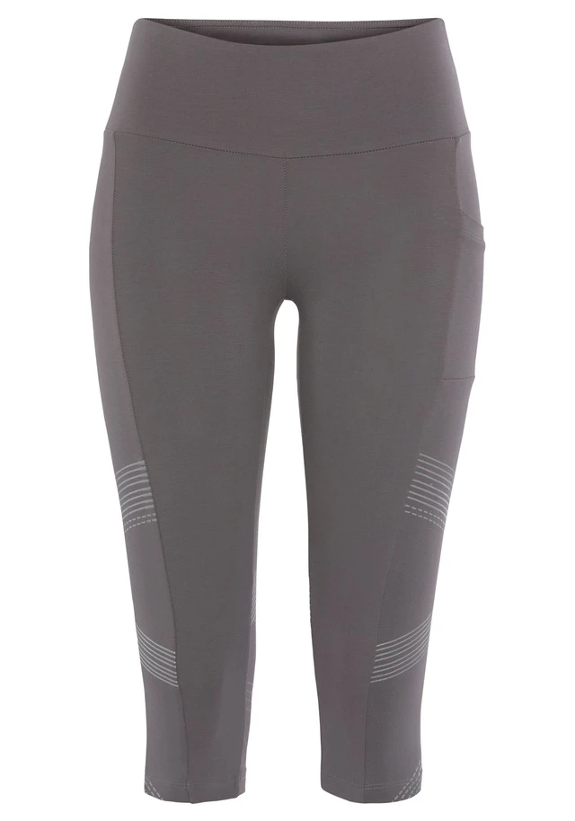 Caprileggings von Lascana Active aus hautsympatischer, elastischer Baumwollmischung. Mit optischem Reflektorprint und breitem, elastischem Bund. Weitere Details: Mit Tasche am Bein und einem reflektierenden Logodetail hinten. Aus 95% Baumwolle, 5% Elasthan.