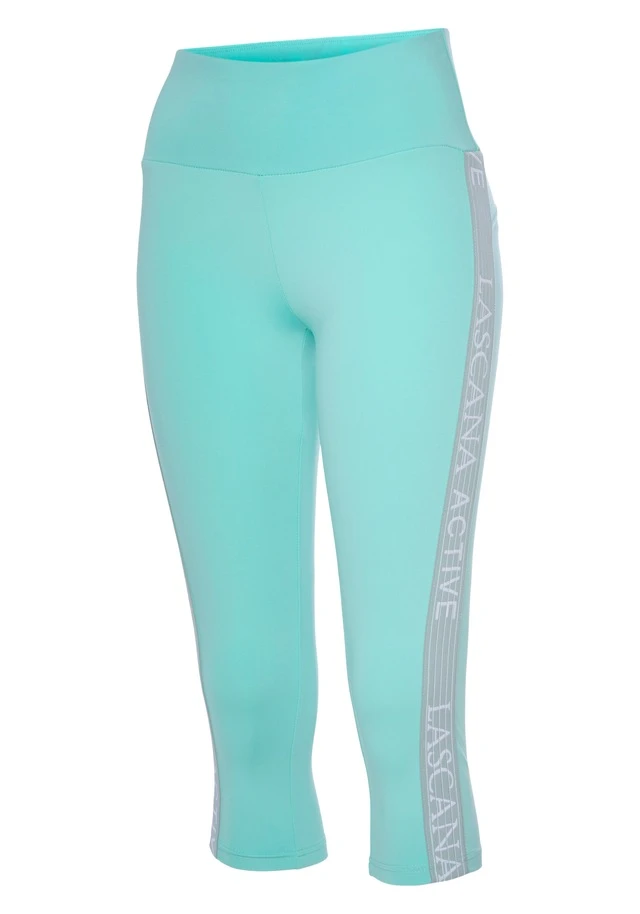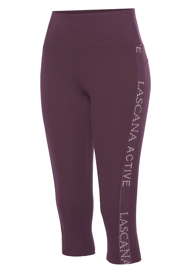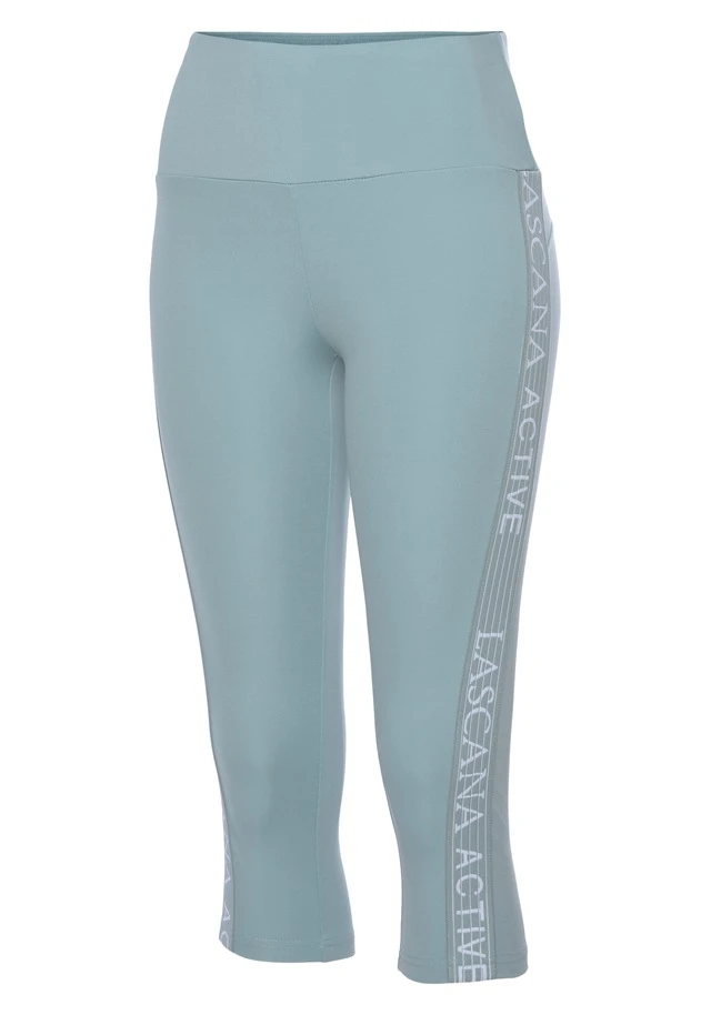 Performance Capri-Leggings von Lascana Active. Breites elastisches Bündchen. Logotapes entlang der Beine. Elastisches, atmungsaktives Funktionsmaterial aus 80% Polyester, 20% Elasthan.