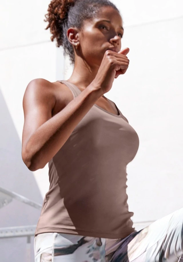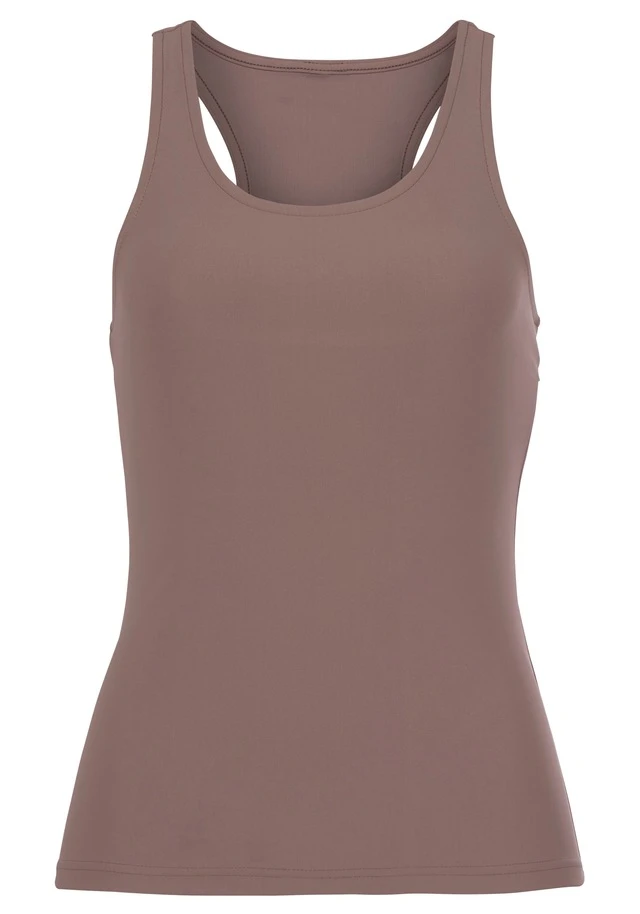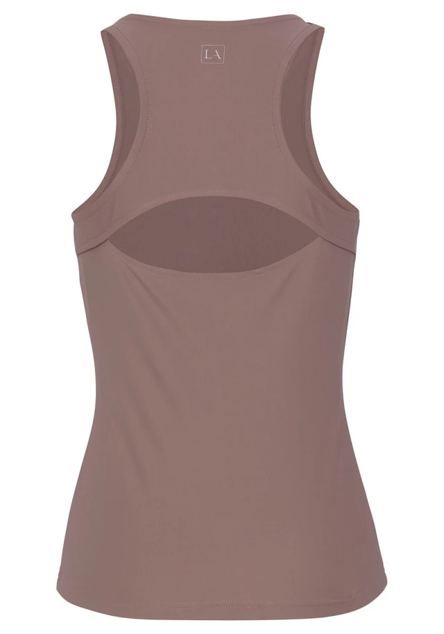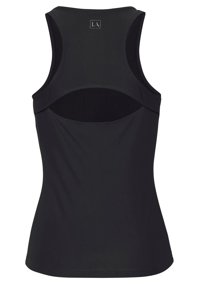 Athleisure-Tanktop von Lascana Active. Rundhalsausschnitt und Ringerrücken mit Cut-out. Taillierte Passform. Atmungsaktives Funktionsmaterial mit Stretchfaktor.