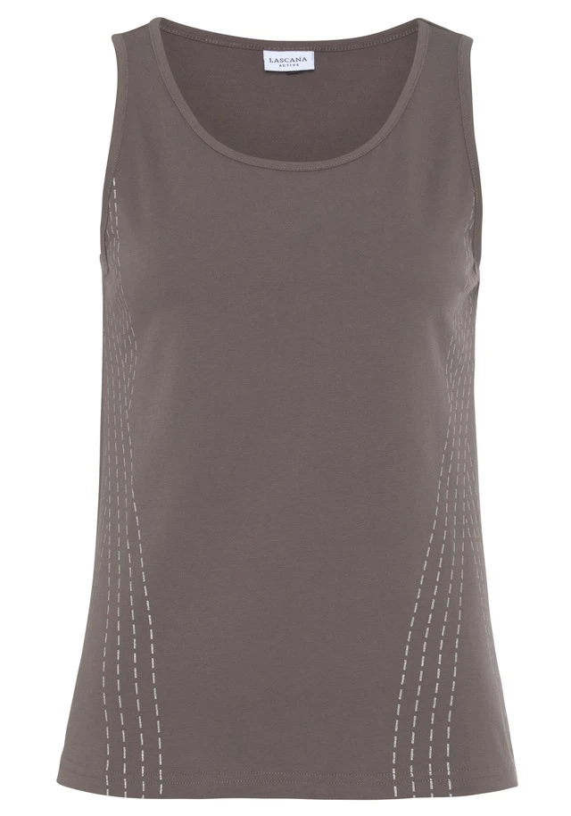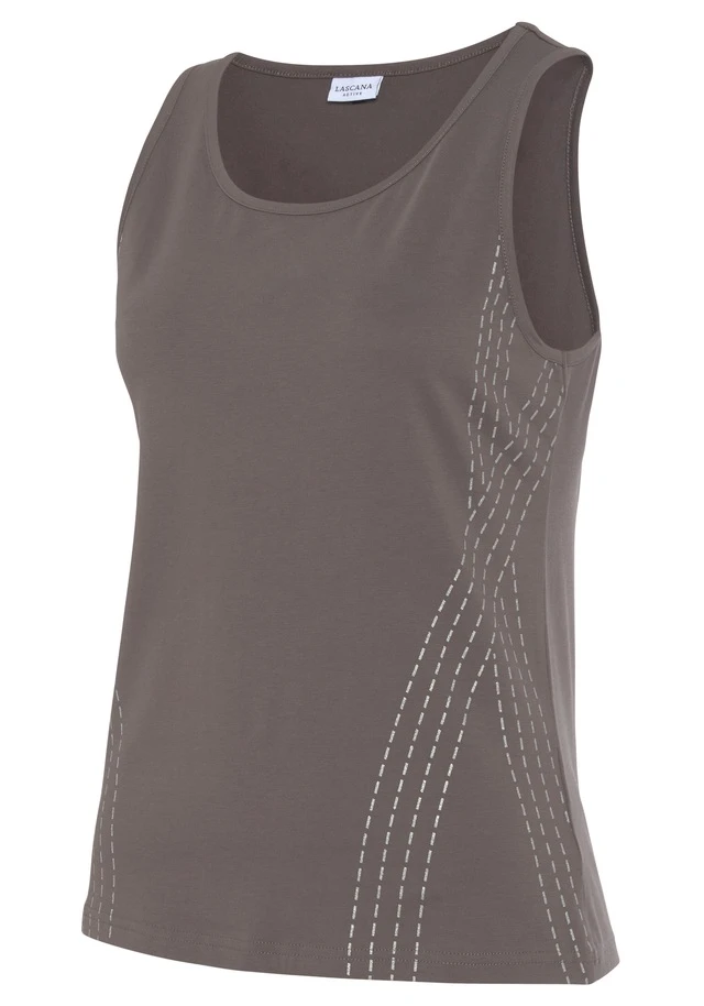Tanktop von Lascana Active. Mit reflektierendem Print vorn. Etwas länger geschnitten. Mit Rundhalsausschnitt. Gut kombinierbar. Feine, weiche Baumwollqualität.