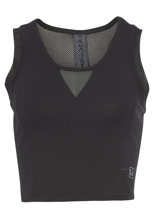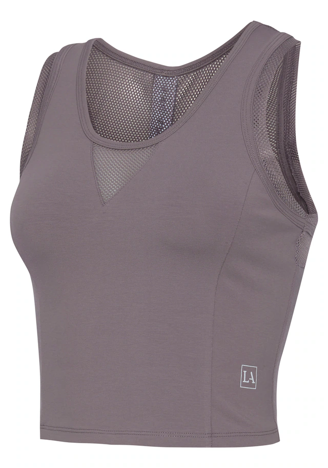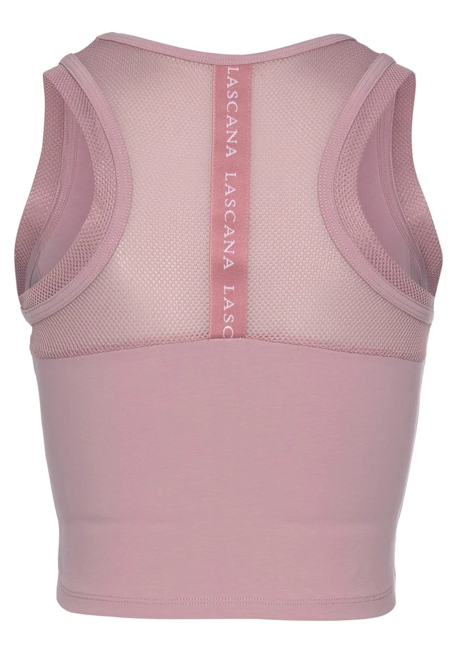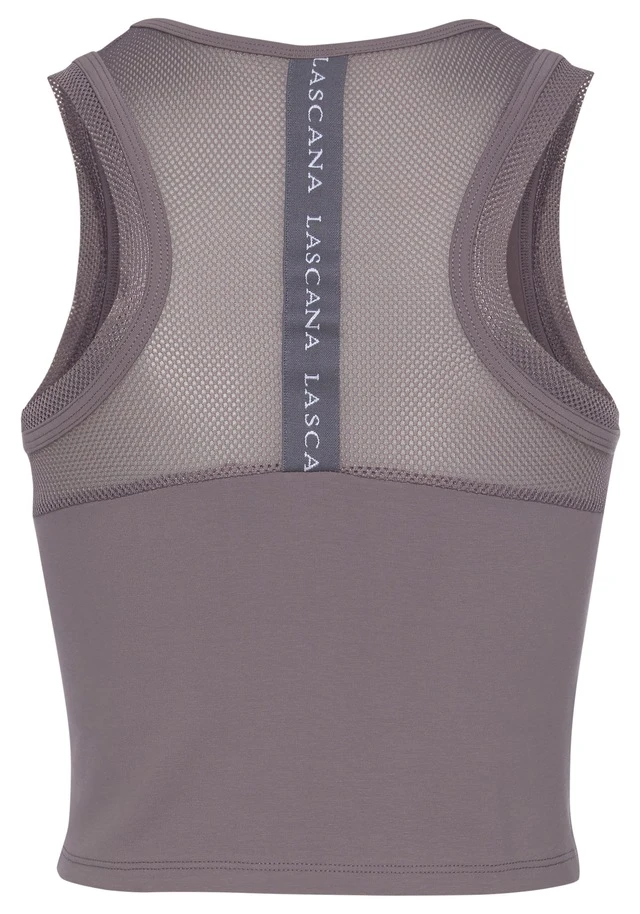 Performance Top von Lascana Active. Racerback mit Mesh Einsätzen. Aus 92% Baumwolle (unterstützt Cotton made in Africa), 8% Elasthan.
