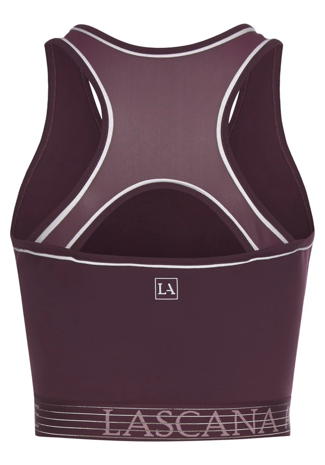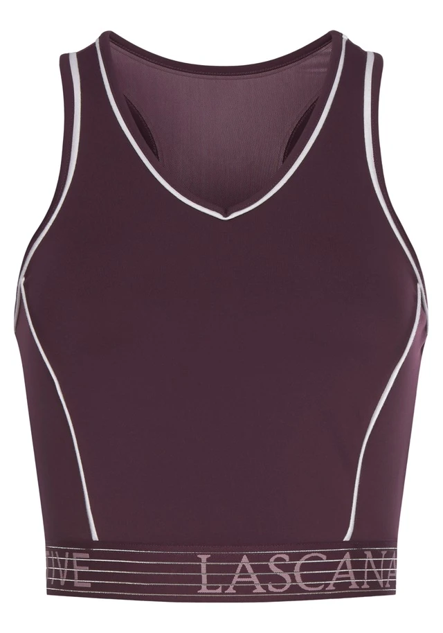 Performance Cropped Top von Lascana Active mit Racerback. Logoschriftzug am Abschlussbund. Figurbetont geschnitten. Aus 80% Polyester, 20% Elasthan.