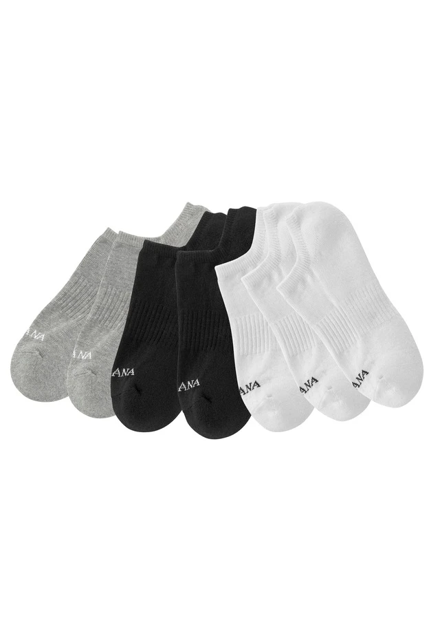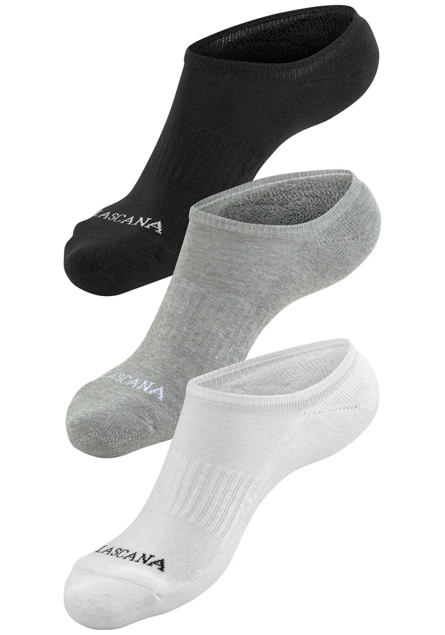 Lascana Aktive Sneaker Socken 7Paar besonders weit ausgeschnitten, Ideal unsichtbar in Sportschuhen. Besonders guter Halt aufgrund des Mittelfußgummis aus 83% Baumwolle, 15% Polyamid, 2% Elasthan