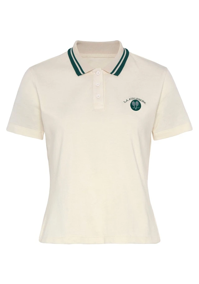 Unifarbenes Tennis-T-Shirt von Lascana Active mit kontrastfarbenen Elementen. Kurze Ärmel und Polokragen mit Knopfleiste. Weiche Qualität aus Baumwolle.