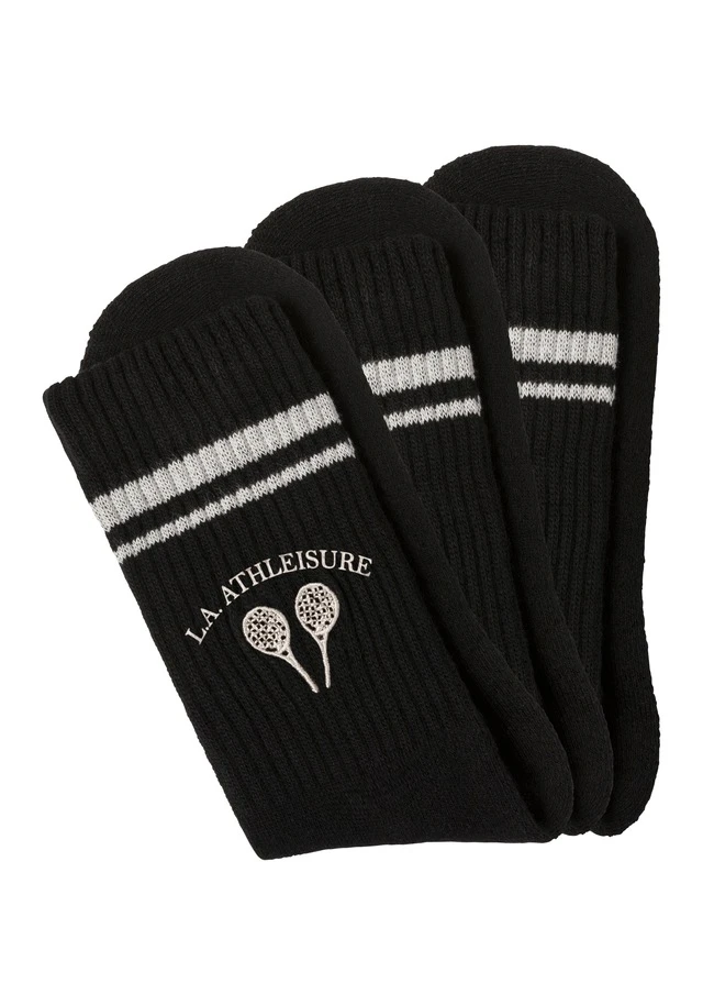 Sportive Tennissocken von Lascana Active im 3er-Pack. Mit Halbfußfrottee und Hochferse. Kleine Stickerei am Schaft. Druckfreie Zehennaht. Weiches Rippmaterial mit hohem Baumwollanteil.