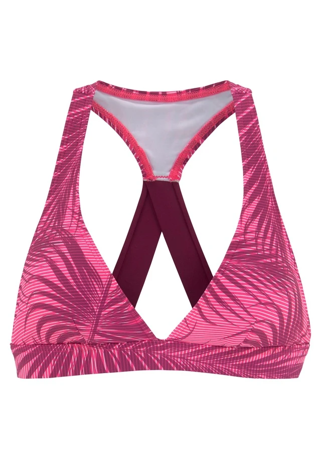 Triangeltop von Lascana Active. Modischer Alloverprint. Cups herausnehmbar. Racerback mit Cut-out. Aus recycelten Fasern.