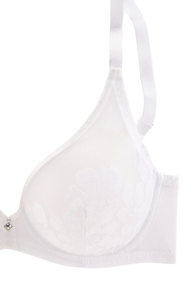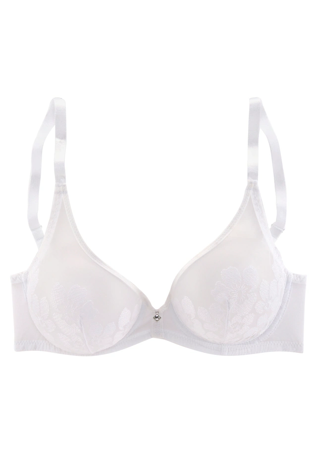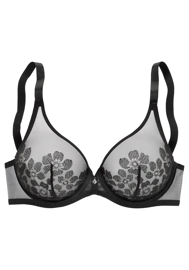 Lascana Belle Affaire: Bügel-BH aus leicht transparenter Spitze im floralem Muster. Glitzeraccessoire in der vorderen Mitte. Träger und Rückenverschluss verstellbar. Reizwäsche. Verführerische Dessous. Spitzen-Dessous. Romantische Dessous. Verspielte Dessous. Aus 60% Polyamid, 30% Polyester, 10% Elasthan.