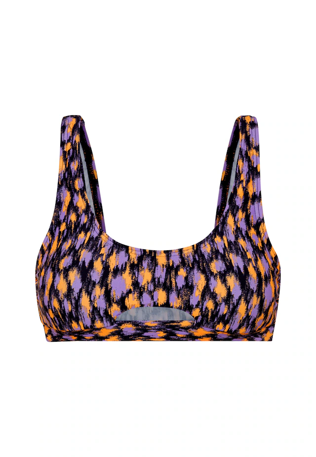 Cooles Bustiertop von LSCN by Lascana mit kleinem Cut-out vorn. Buntes Allovermuster. Tiefer Rückenausschnitt. Schmales Unterbrustbündchen. Pflegeleichtes Material mit recyceltem Polyamid.