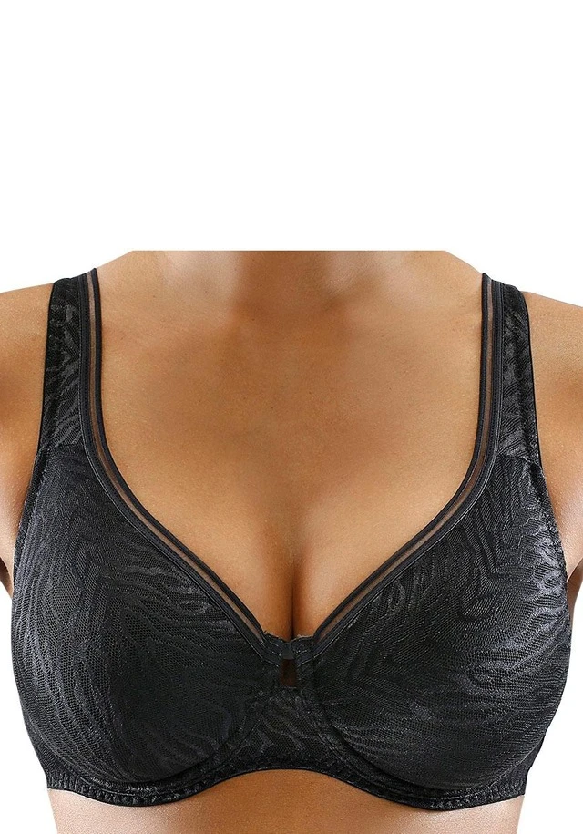 Mit Bügel. Nahtlos vorgeformte Cups aus hübscher elastischer Spitze. Breitere Träger und Rückenverschluß verstellbar. Klassische Dessous. Bequeme Alltags-Dessous. Modische Dessous. Der BH ist aus 80% Polyamid, 20% Elasthan. BHs sind nicht trocknergeeignet, da die Versteller und Ringe durch die Hitze beschädigt werden und brechen.