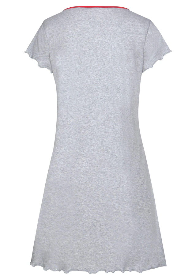 Dieses kurze Nachthemd von Peanuts LM ist genau das richtige für süße Träume. Blickfang ist der freche Snoopy-Print auf der Vorderseite des Minikleids. Details wie der kontrastfarbene Rundhalsausschnitt mit kleiner Zierschleife vorn sowie die romantischen Babylock-Abschlüsse an den kurzen Ärmeln und am Saum runden den legeren Charme des Schlafshirts ab. Die figurumspielende Schnittführung umschmeichelt die Silhouette, während die weiche Single-Jerseyqualität dir einen exzellenten Tragekomfort schenkt. Ergänze deine Nightwear-Essentials um ein weiteres Lieblingsstück mit dem bedruckten Nachthemd von Peanuts LM! Aus 100% Baumwolle (unterstützt Cotton made in Africa).