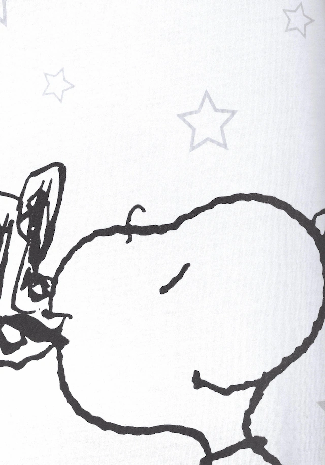 Langes Shirt in A-Form mit ¾-Ärmeln und Snoopy-Frontdruck. Länge vom Schulterpunkt in Gr. 36/38 ca. 77cm. Single-Jersey aus 100% Baumwolle. Stretch-Leggings mit elastischem Bund aus 95% Baumwolle, 5% Elasthan.