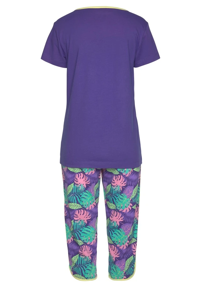 Pyjamaoberteil mit Frontprint, kurzen Ärmeln und Rundhalsausschnitt. Hose in Capri-Länge mit allover Print und elastischem Bund. Angenehme Baumwollqualität.