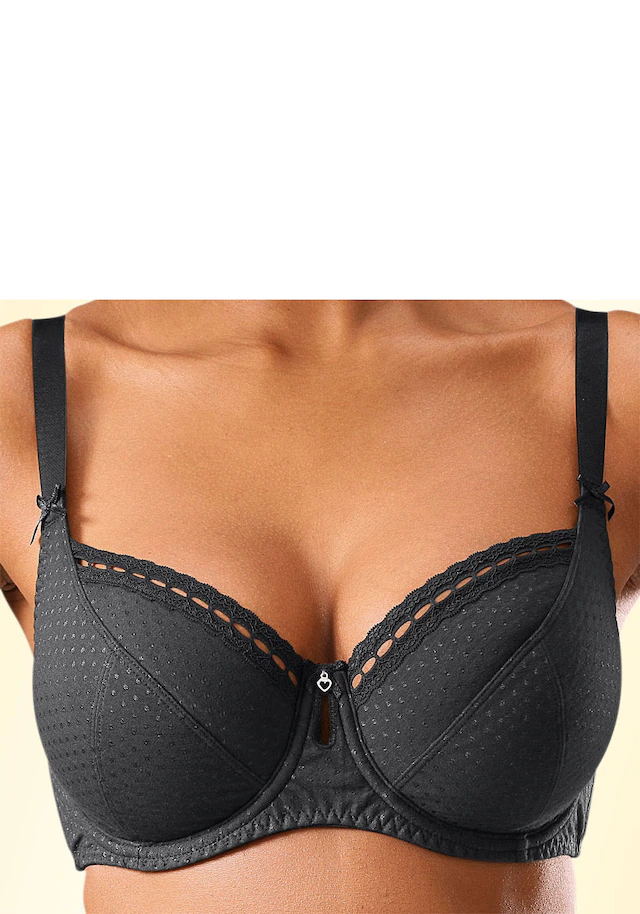 Zauberhafter BH im hübschen Dirndl-Schnitt. Bringen Sie Ihr Dekolleté schön zur Geltung! Die auf Bügel gearbeitete Cups formen und stützen. Aus trageangenehmem Baumwolljacquard mit dezentem, leicht glänzenden Pünktchenmuster, Zierkante am Cup und Accessoire in der vorderen Mitte für einen femininen, süßen Look. In der günstigen Doppelpackung erhältlich. Um einen maximalen Tragekomfort bis in große Größen zu bieten, wird die Passform in größeren Größen optimiert. Die Träger werden in größeren Größen breiter als abgebildet, um ein Einschneiden auf der Schulter zu verhindern. Auch die Rücken- und Verschlussbreiten wachsen mit, um in jeder Größe optimalen Halt und sicheren Sitz zu bieten. Es werden breitere Elastikbänder entlang der Kanten eingesetzt, die dank hochelastischer Nähte nicht einschneiden. Klassische Dessous. Bequeme Alltags-Dessous. Modische Dessous. Ein rundum schöner BH bis in Cup E. Sexy Dessous. Spitzen-Dessous. Romantische Dessous. Verspielte Dessous Der Bügel-BH ist aus 79% Baumwolle, 8% Polyamid, 8% Polyester, 5% Elasthan. BHs sind nicht trocknergeeignet, da die Versteller und Ringe durch die Hitze beschädigt werden und brechen.