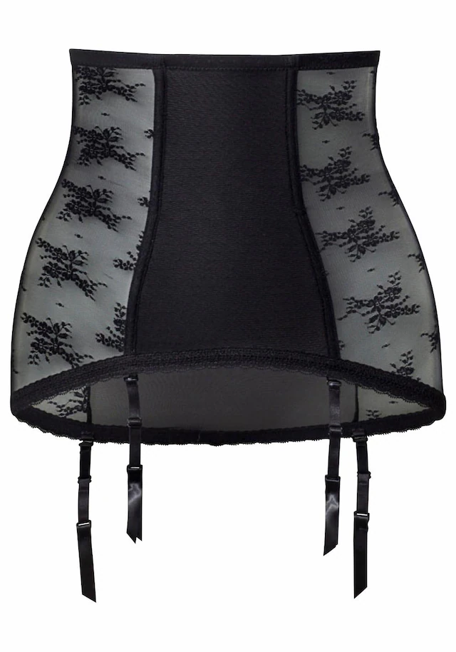 Mit abnehmbaren Strapsen aus transparenter Spitze. Höherer Schnitt für ein angenehmes Tragen. Bauchpartie aus doppellagigem Netz und mit Stäbchen verstärkt. Hinten mit Haken- und Ösenverschluss. Erotische Dessous. Reizvolle Dessous. Reizwäsche. Verführerische Dessous. Spitzen-Dessous. Romantische Dessous. Verspielte Dessous. Aus 90% Polyamid, 10% Elasthan.