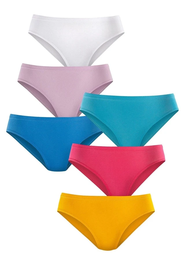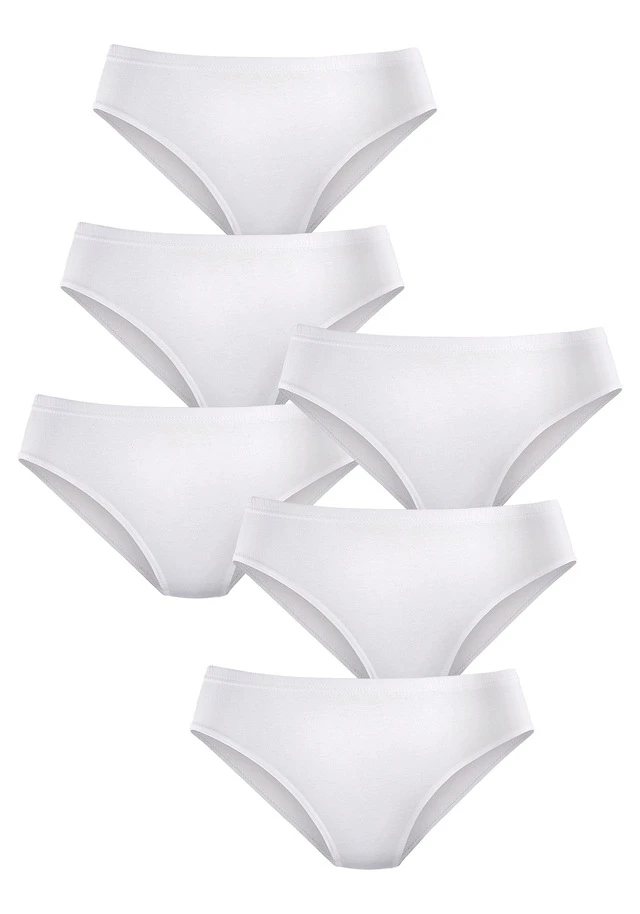 Zeitlose Damenslips im praktischen 6er-Pack von Petite Fleur. Unifarben. Etwas höhere Leibhöhe für eine komfortable Passform. Normaler Beinausschnitt. Weiche Qualität.