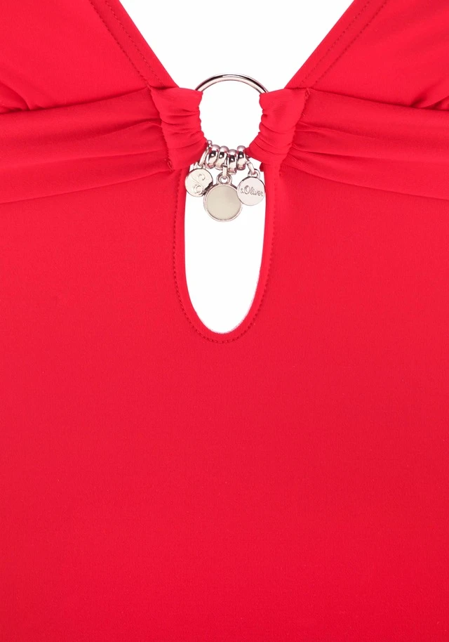 Bademoden von s.Oliver RED LABEL Beachwear mit silberfarbenen Accessoires als besonderes Trend-Detail. Badeanzug mit Accessoires zwischen den Cups, darunter mit raffinierter Öffnung. Herausnehmbare Cups, im Nacken zu binden und im Rücken zu schließen. Vorn gefüttert. Softe Microfaser.